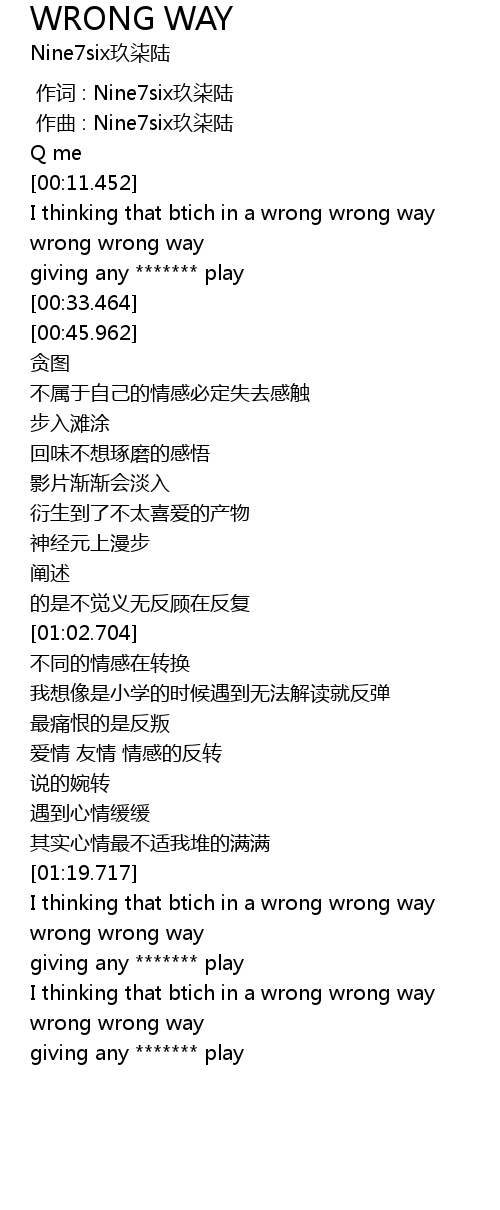 | [01:32.469] | wrong wrong way |