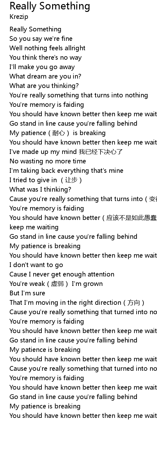 | [01:14.00] | Cause you're really something that turns into(变得) nothing |