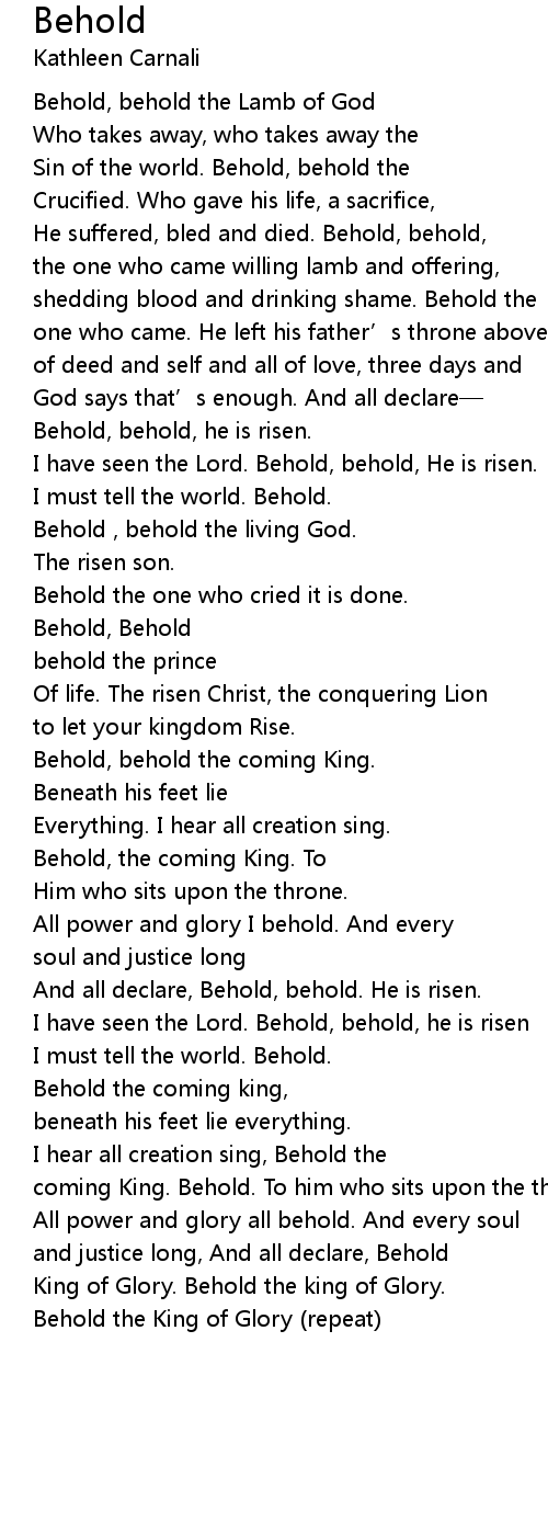 | Song | Behold |