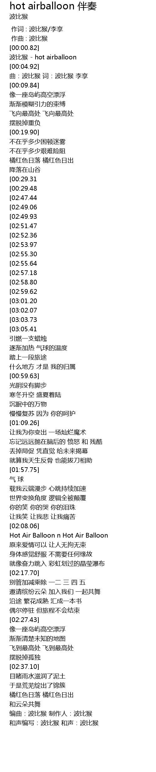 | [03:41.30][03:02.07][01:24.27][00:45.19] | Hot Air balloon balloon |