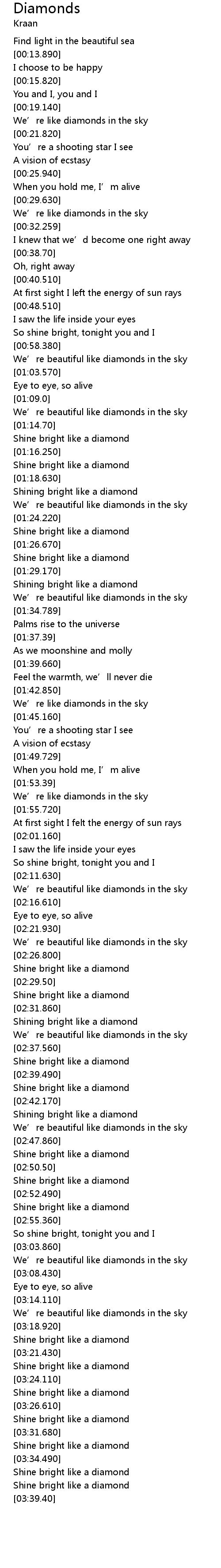 | [03:15.490] | We’re beautiful like diamonds in the sky |