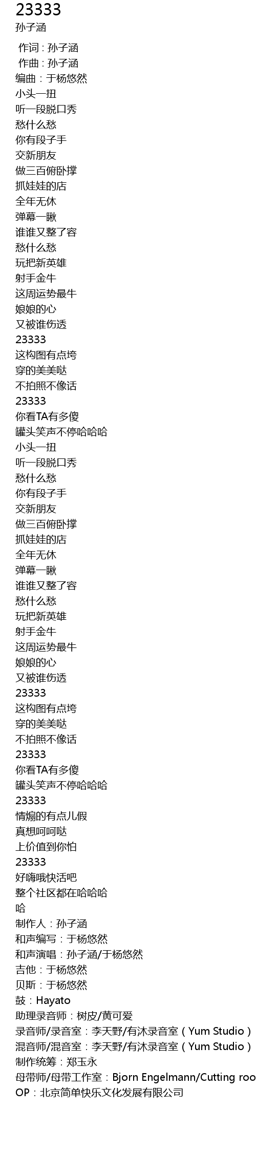 | [02:37.00] | 和声演唱:孙子涵/于杨悠然 |