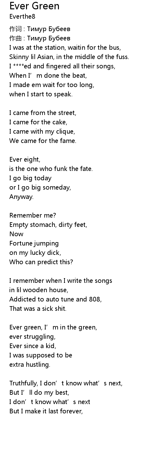 | Ever green, I' m in the green, | |