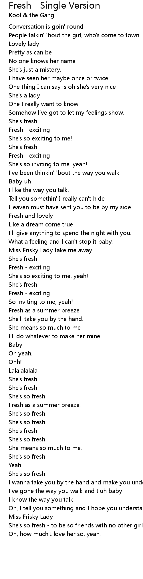She's so fresh - to be so friends with no other girl than lady. |