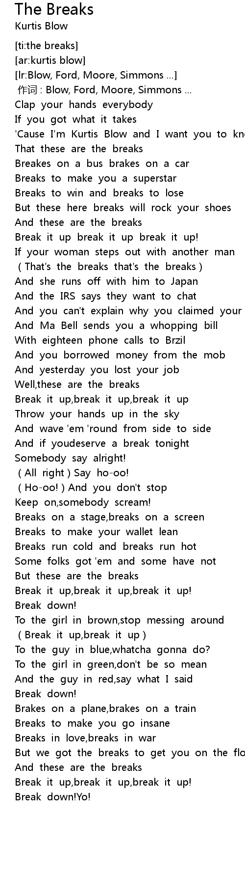 | [00:49.94] | (That's the breaks that's the breaks) |