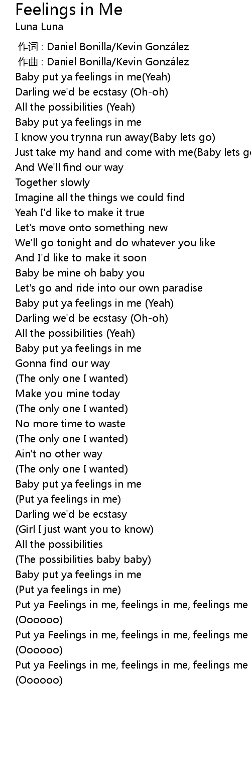 | [02:51.977] | Put ya Feelings in me, feelings in me, feelings me |