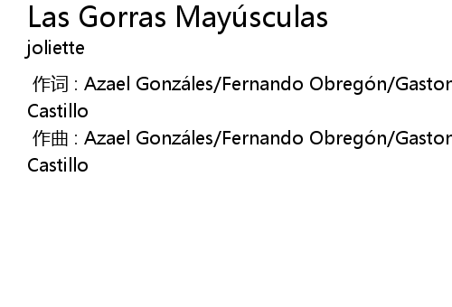 | [00:00.000] | 作词 : Azael Gonzáles/Fernando Obregón/Gaston Prado/Juan Pablo Castillo |