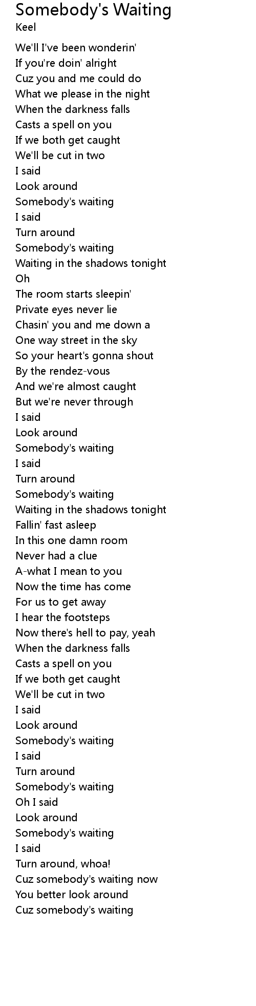 | Cuz somebody's waiting now | |