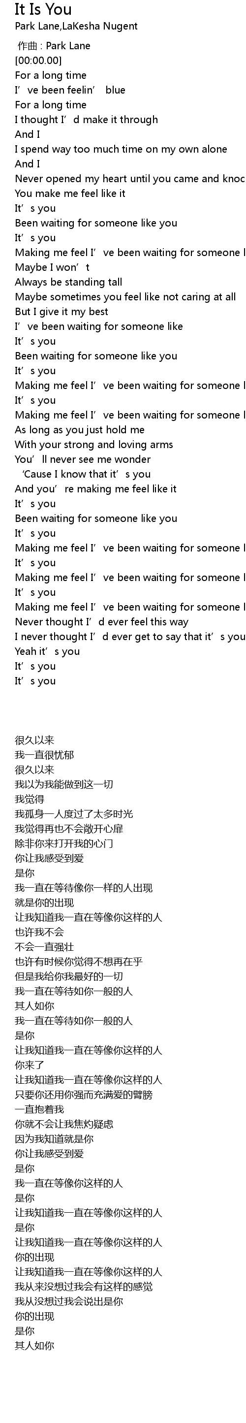 | [00:00.000] | zuò qǔ : Park Lane |