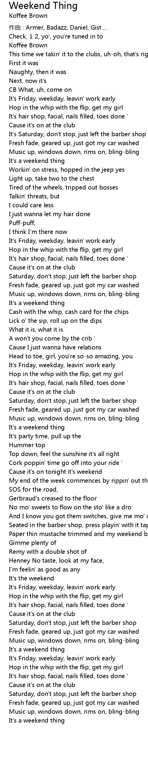 | Song | Weekend Thing |