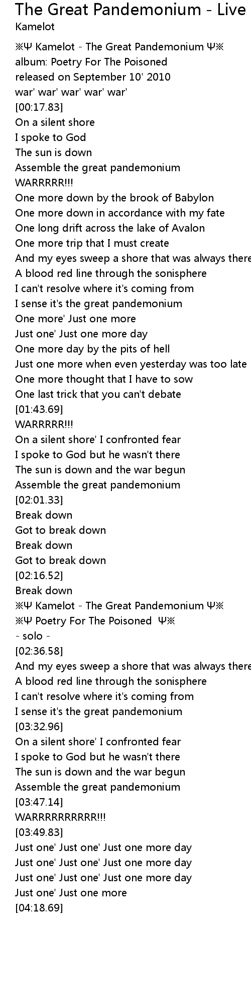 | [02:24.02] | ※Ψ Kamelot - The Great Pandemonium Ψ※ |