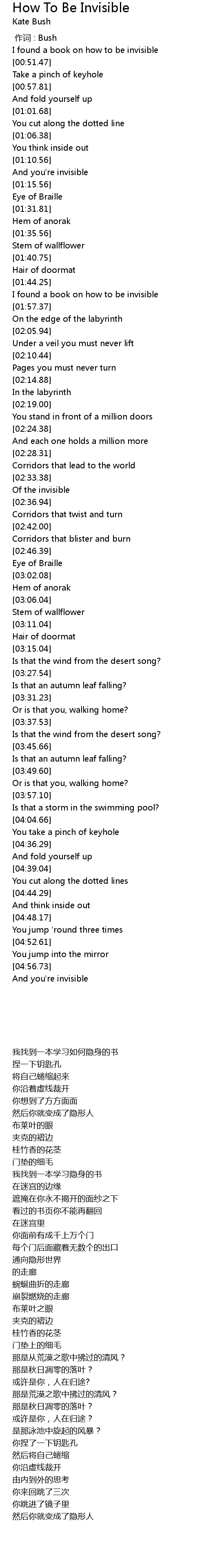 | [00:46.78] | I found a book on how to be invisible |