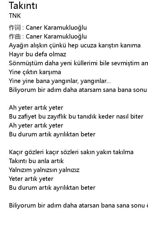 | 作词 : Caner Karamukluoğlu | |