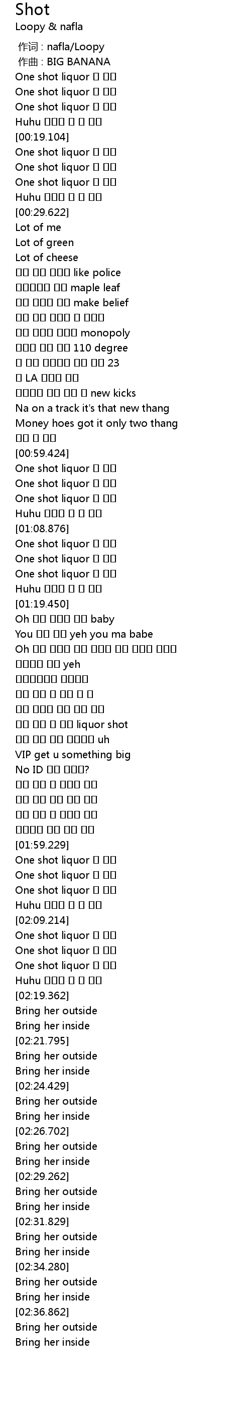 | [02:04.396] | One shot liquor 난 나뻐 |