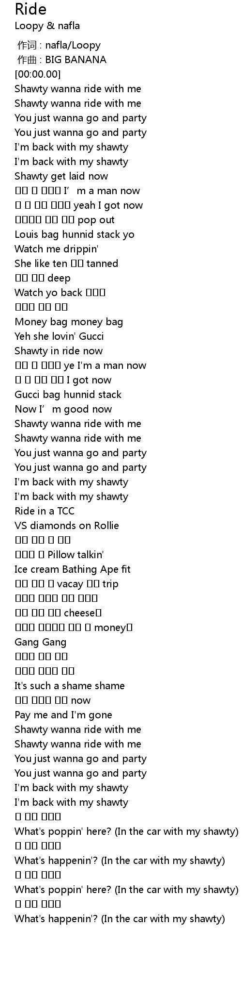 | [02:27.339] | What's poppin' here? (In the car with my shawty) |