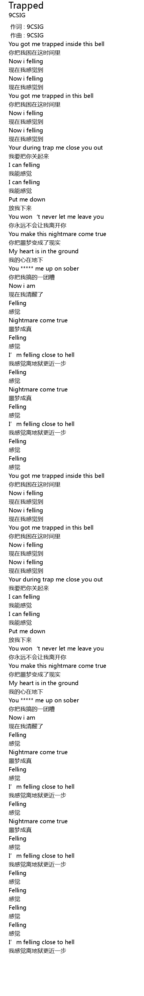 | [00:00.000] | 作词 : 9CSIG |