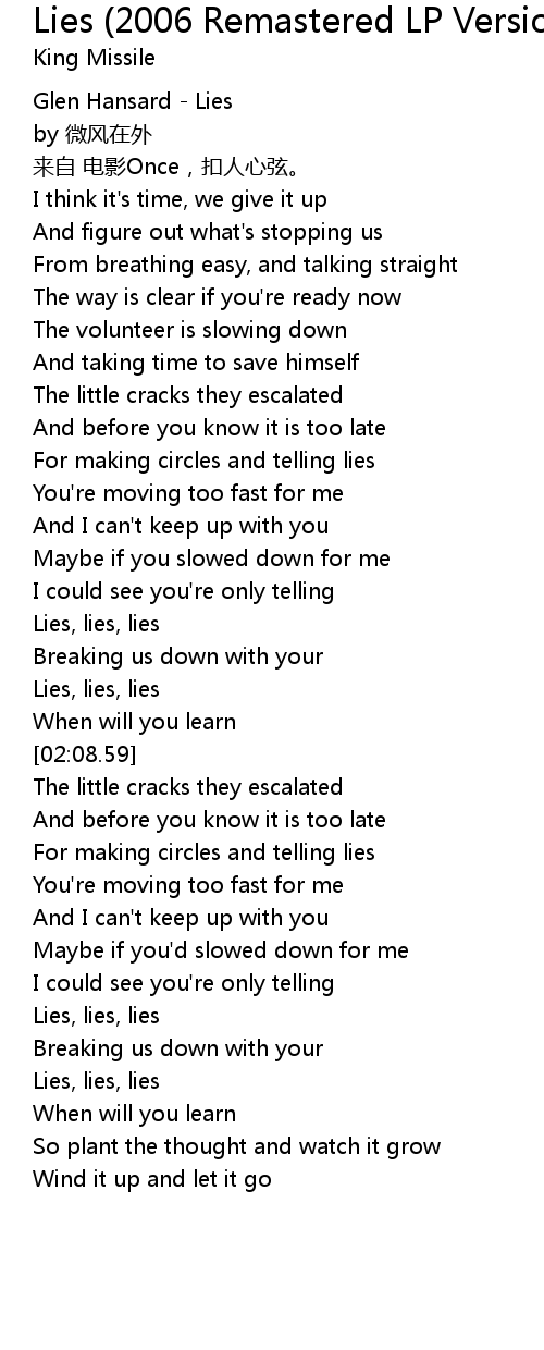 | [00:01.08] | 来自 电影Once,扣人心弦。 |