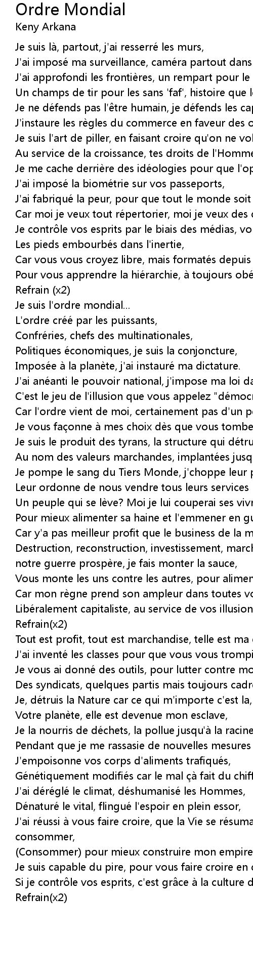 | J' ai ane anti le pouvoir national, j' impose ma loi dans les pays, | |