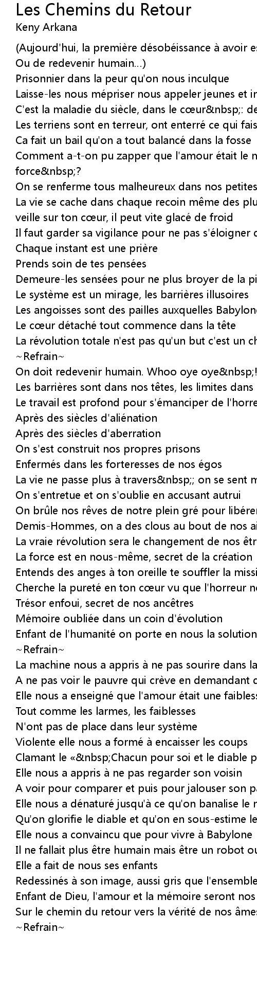 | On doit redevenir humain. Whoo oye oye ! (x4) | |