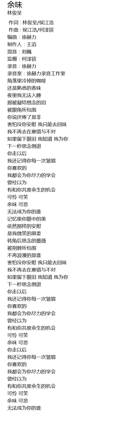 | [00:00.000] | 作词 : 林俊呈/侯江浩 |