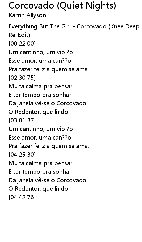 | [00:02.00] | Everything But The Girl Corcovado Knee Deep RemixBen Watt Vocal ReEdit |