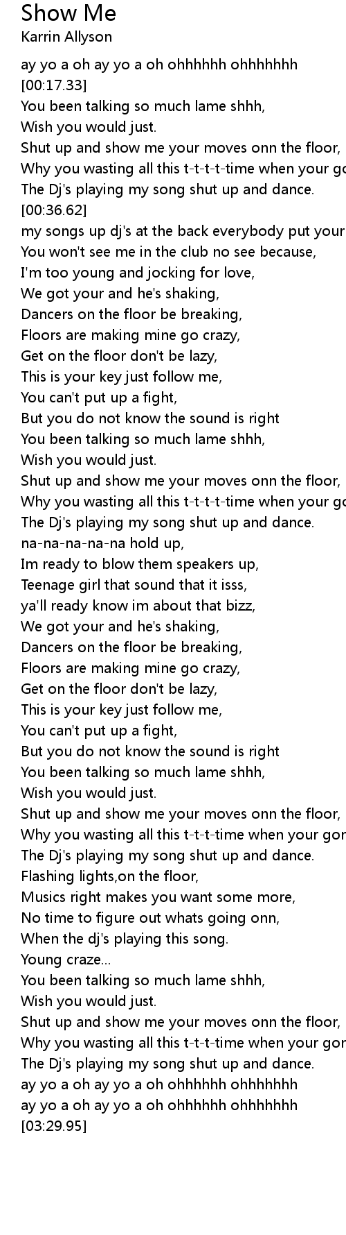 Shut up and show me your moves onn the floor, |