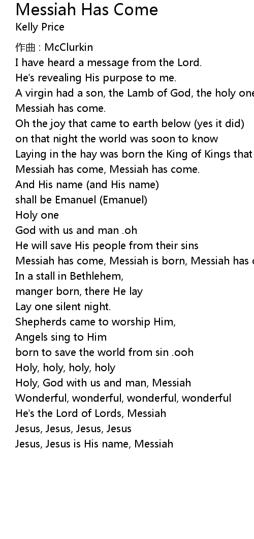 | Messiah has come, Messiah is born, Messiah has come. | |