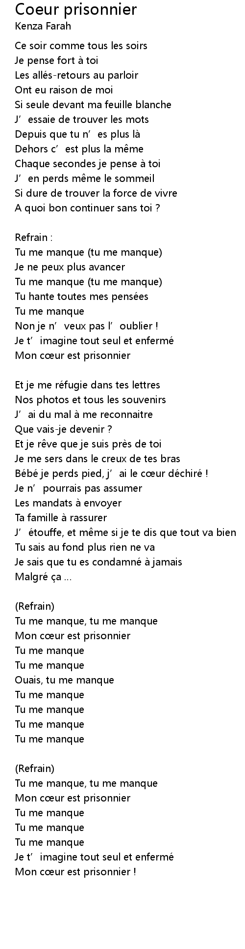 | Tu me manque tu me manque | |
