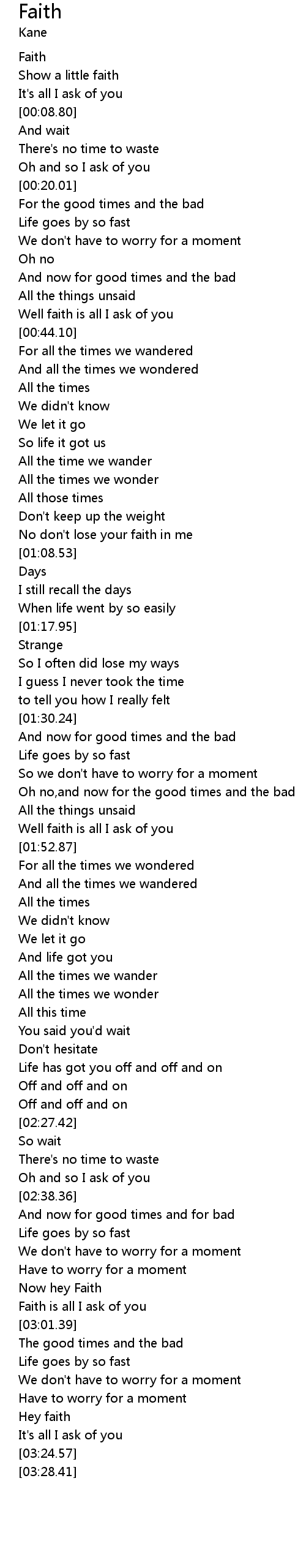| [00:39.40] | Well faith is all I ask of you |