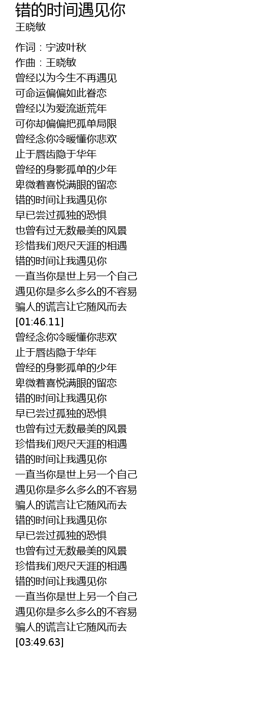| [03:27.30] | cuò de shí jiān ràng wǒ yù jiàn nǐ |