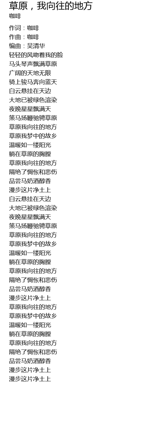 | [02:43.42] | 草原我向往的地方 |
