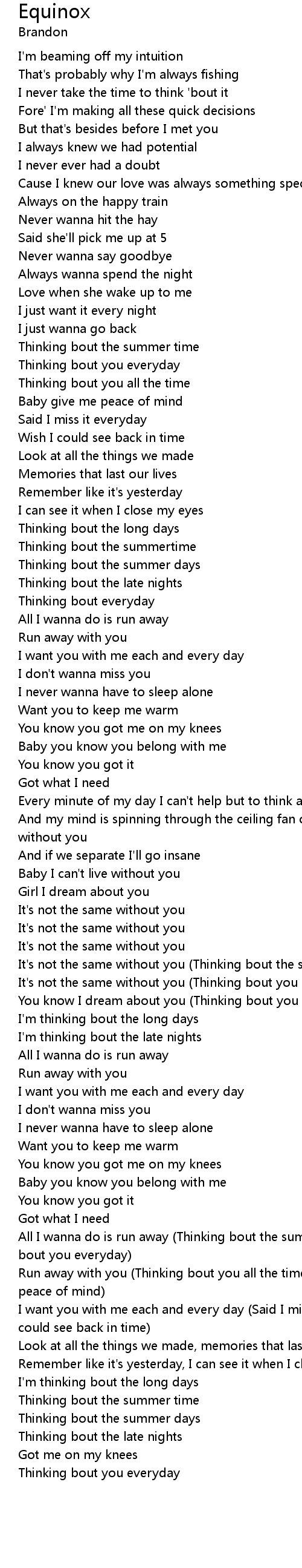 | [02:59.41] | It's not the same without you (Thinking bout the summer time) |