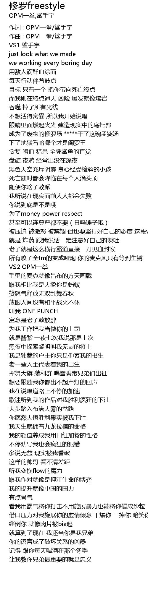 | 作词 : OPM一拳/鲨手宇 | |