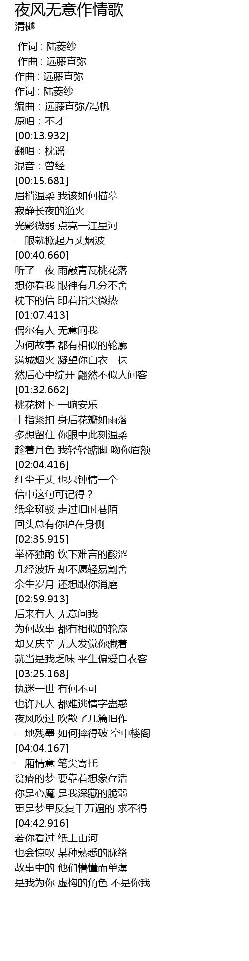 | [00:10.179] | bian qu: yuan teng zhi mi feng fan |