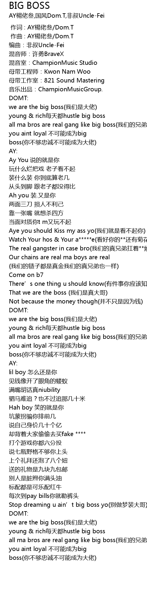 | [00:52.575] | That we are the boss (我们是真大哥) |