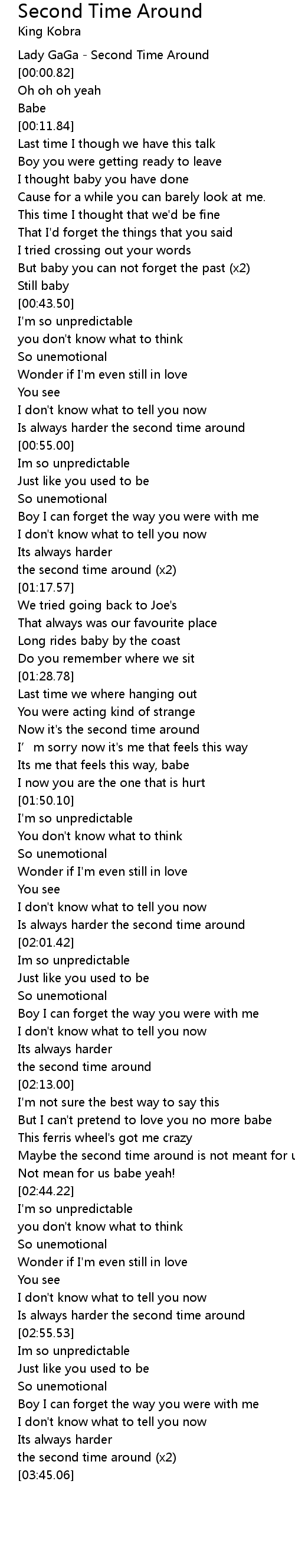 | [00:-7.52] | Lady GaGa Second Time Around |