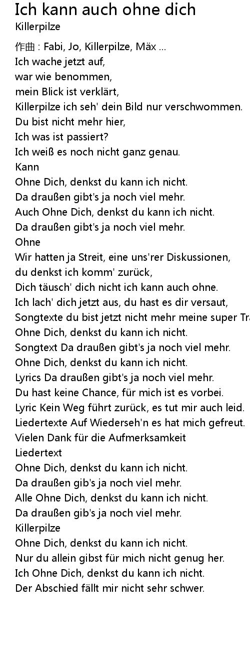| Auch Ohne Dich, denkst du kann ich nicht. | |