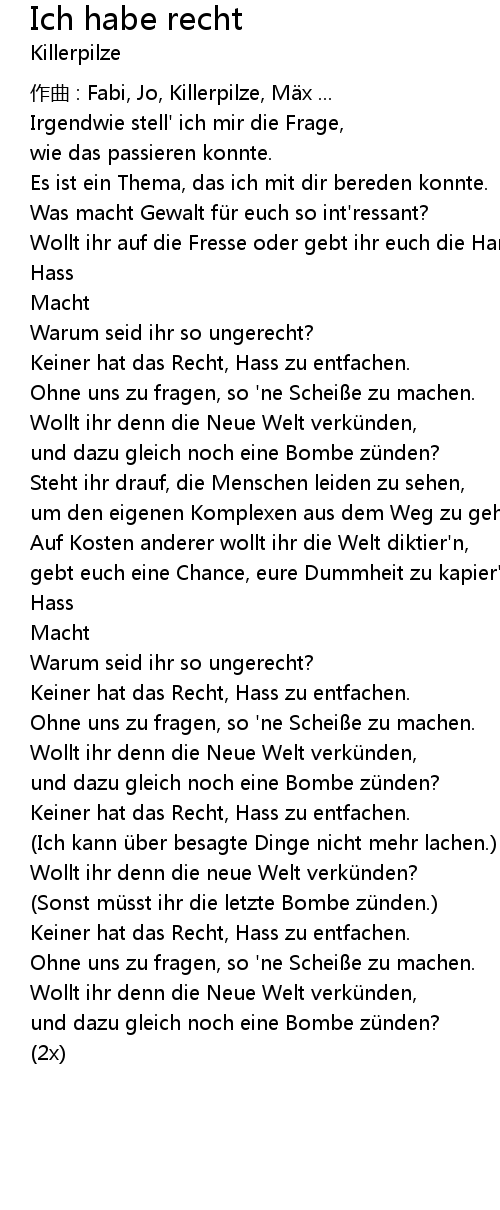 | Song | Ich habe recht |