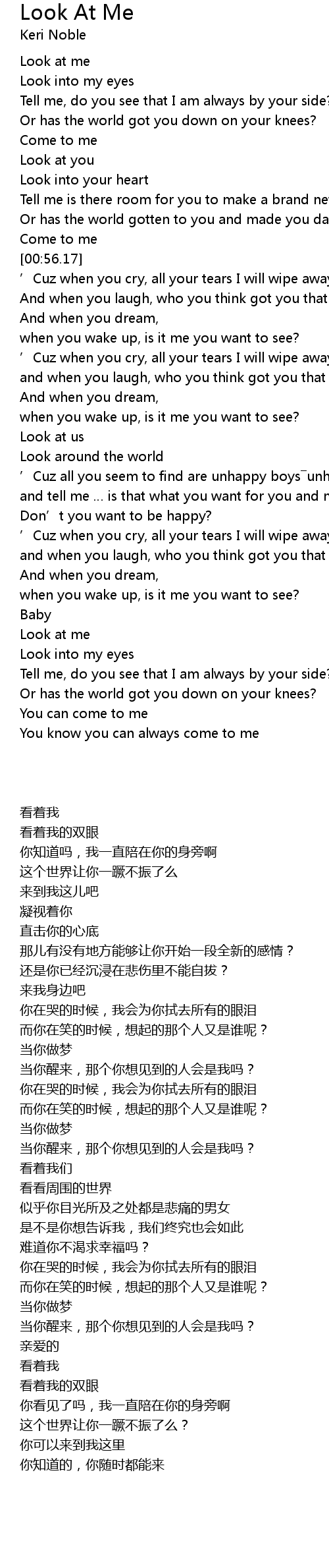 | [00:56.94] | ’Cuz when you cry, all your tears I will wipe away |