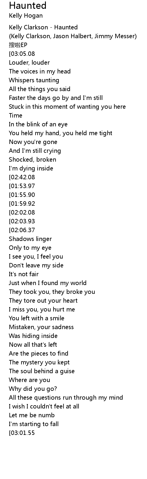 | [00:02.54] | Kelly Clarkson Haunted |
