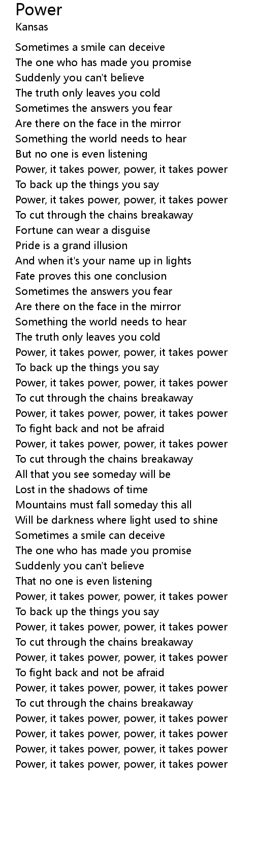| Power, it takes power, power, it takes power |
