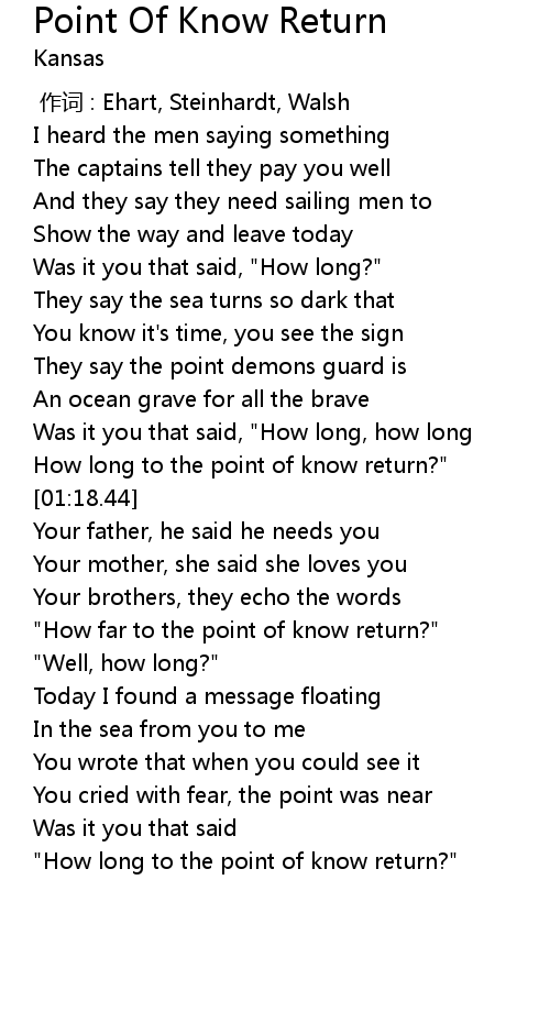 | [00:57.69] | How long to the point of know return?" |