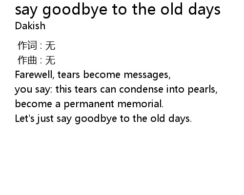 | Song | say goodbye to the old days |