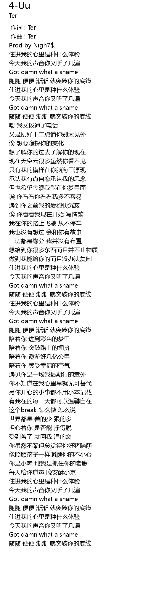 | [00:00.000] | 作词 : Ter |