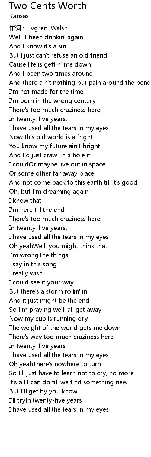 | 作词 : Livgren, Walsh | |