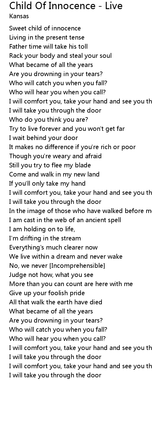 Child Of Innocence - Live Lyrics