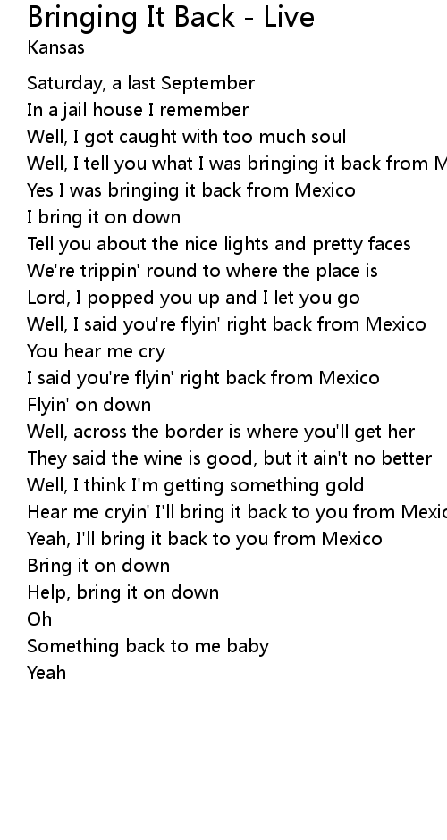 Hear me cryin' I'll bring it back to you from Mexico |