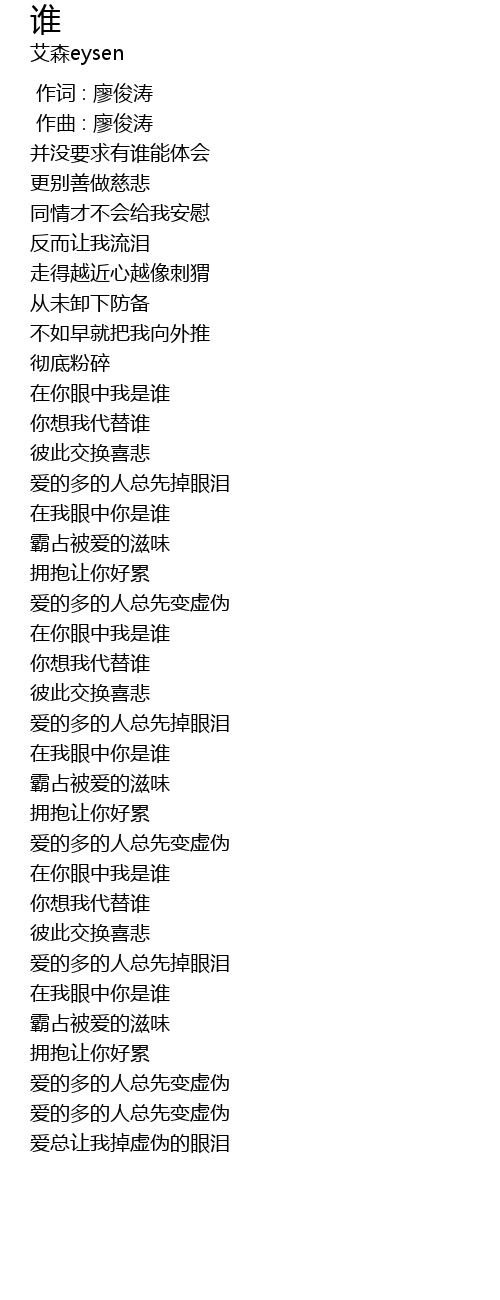 | [01:44.379] | 爱的多的人总先变虚伪 |