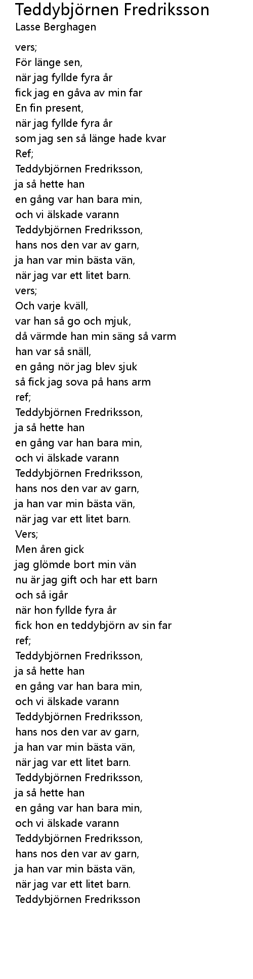 | Song | Teddybjörnen Fredriksson |