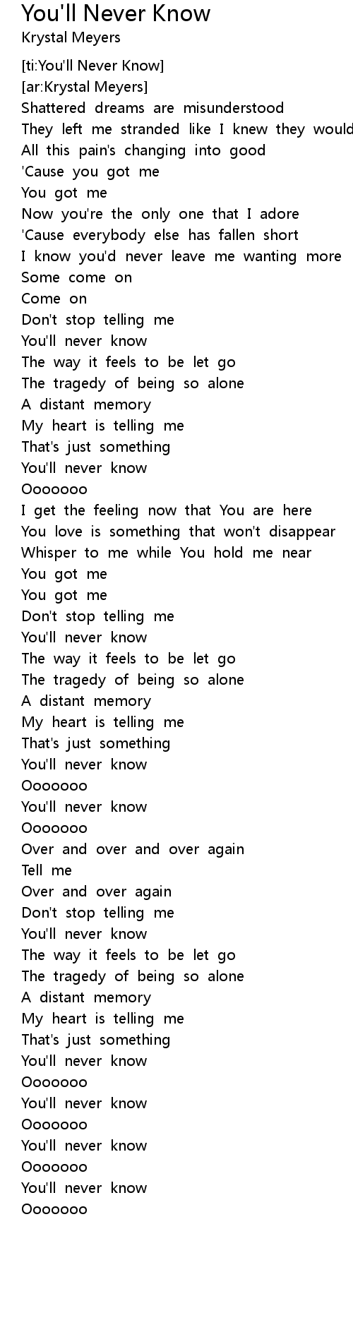 [ti:You'll Never Know] |